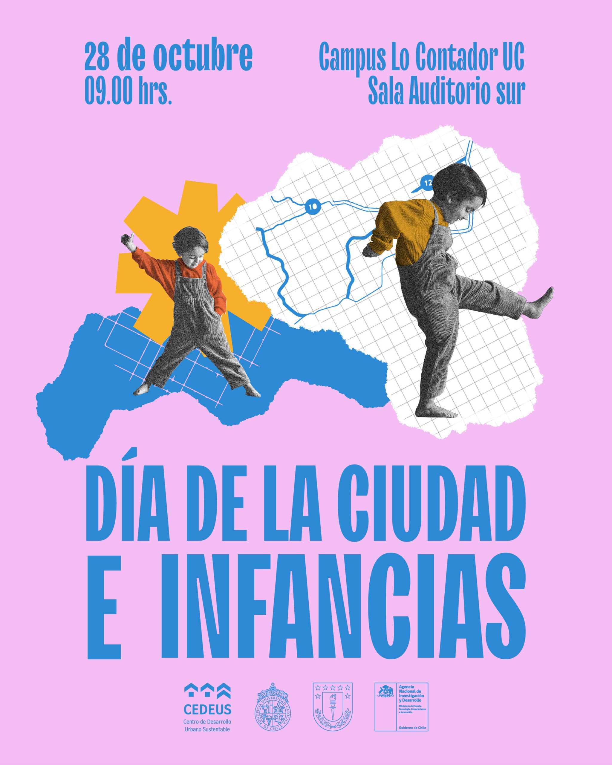 El Centro de Desarrollo Urbano Sustentable (CEDEUS) te invita cordialmente al “Día de la Ciudad y las Infancias”, una instancia de encuentro para reflexionar sobre los desafíos, avances y propuestas en torno a la incorporación de la mirada de las infancias y adolescencias en la planificación urbana.