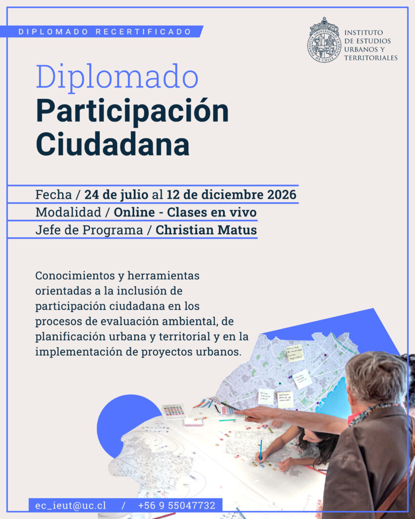 El diplomado entrega conocimientos y herramientas teóricas y prácticas orientadas a la inclusión de participación ciudadana en los procesos de evaluación ambiental, de planificación urbana y territorial y en la implementación de proyectos urbanos.