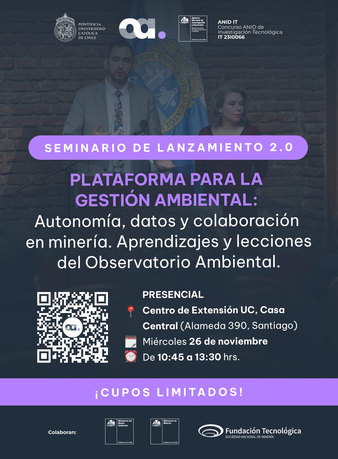 El Observatorio Ambiental UC presenta la actualización 2.0 de su plataforma para la gestión ambiental, un espacio que promueve el acceso a información, la autonomía territorial y la colaboración multisectorial en torno a los desafíos socioambientales de la minería.