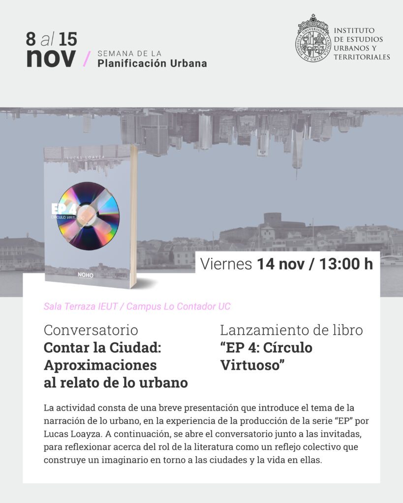 La actividad se inicia con una presentación de Lucas Loayza, egresado de Planificación Urbana UC, sobre la producción de la serie “EP”, para luego abrir un diálogo con las invitadas y panelistas, reflexionando sobre cómo los relatos colectivos contribuyen a comprender y representar la vida en las ciudades.