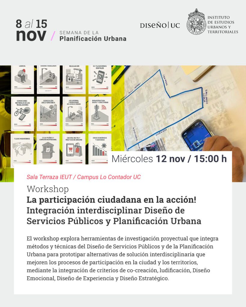 En el marco de la Semana de la Planificación Urbana 2025, este workshop propone explorar herramientas de investigación proyectual que integran métodos y técnicas del Diseño de Servicios Públicos y de la Planificación Urbana.
