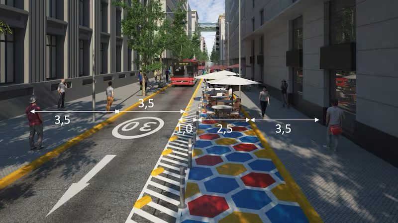 De acuerdo con el municipio, la circulación será exclusiva para buses RED, con una pista de 3,5 metros de ancho, lo que permitirá mantener espacios peatonales, además de terrazas gastronómicas y mobiliario urbano. Ese día, el alcalde de Santiago, Mario Desbordes, detalló que “vamos a cuidar el paseo urbano, pero le vamos a agregar la circulación de un bus Red a muy baja velocidad, máximo 30 km/h”.