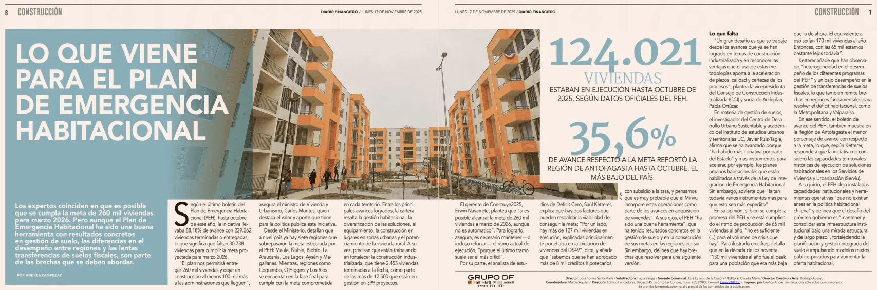 El Diario Financiero agrega que, entre los principales avances, el Ministerio destaca la gestión habitacional, la diversificación de las soluciones, el equipamiento, la construcción en zonas urbanas y el potenciamiento de la vivienda rural. Asimismo, están trabajando en fortalecer la construcción industrializada, que suma 2.455 viviendas terminadas a la fecha, dentro de las más de 12.500 en gestión distribuidas en 399 proyectos.